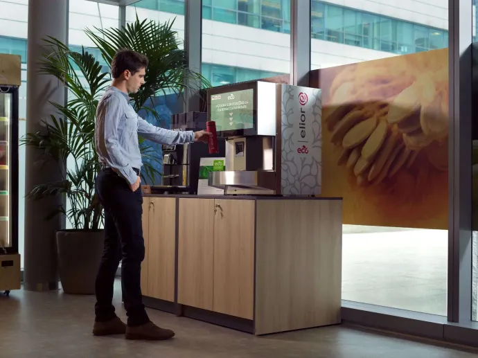 Anche nel beverage cerchiamo di essere plastic free: dove ci sono i dispenser eroghiamo bicchieri in carta o forniamo le borracce.
